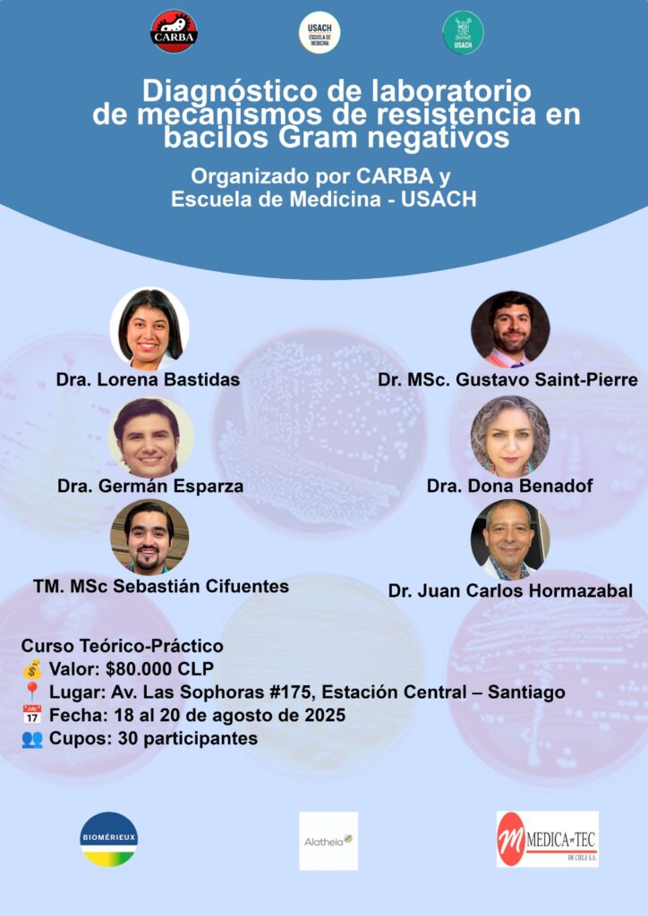 Este 18, 19 y 20 de agosto se realiza el Curso presencial de diagnóstico de resistencia en bacilos Gram negativos, organizado por la Escuela de Medicina USACH y el Consorcio Austral.