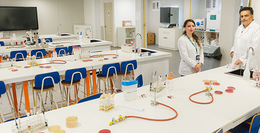 Con una superficie total de de 144 m², este laboratorio está implementado con microscopios ópticos tradicionales, microscopios estereoscópicos e incubadoras, junto a una amplia variedad de material que permite la manipulación y observación de muestras tales como bacterias, hongos y parásitos, facilitando la comprensión de la microbiología y de la parasitología.